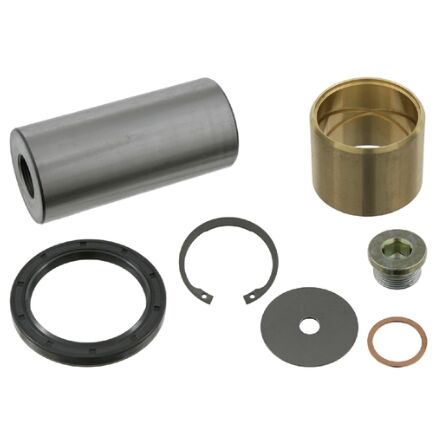 Ein kompletter Satz zum Ersetzen verschlissener Vorderachs-Lenkzapfen an Schwerlastfahrzeugen.